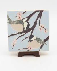 -Hand pressed from our artist-made molds & hand glazed -5"H x 5"W -Tile has a notch in the back for hanging